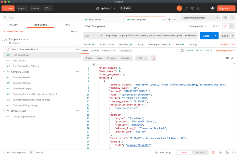 This product - UK Companies House API Examples provides you with ready-made API integration requests that cover the most used API scenarios. You get a Postman collection with regularly tested and functioning API request examples.
